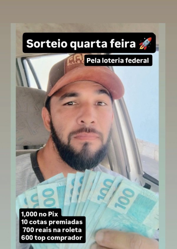 1000 reais no Pix no prêmio principal mais 10 cotas premiada de 100 reais sendo a cota 999999 vale 200 reais mais 3 prêmios na roleta de 200 reais / 150 reais / 100reais